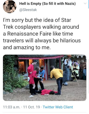 | One highlight of the Ohio Ren Fest is the Time Travelers' Weekend. They were doing it before it showed up on The Big Bang Theory. From @Sleestak on... Whatever the hell it's called now. |